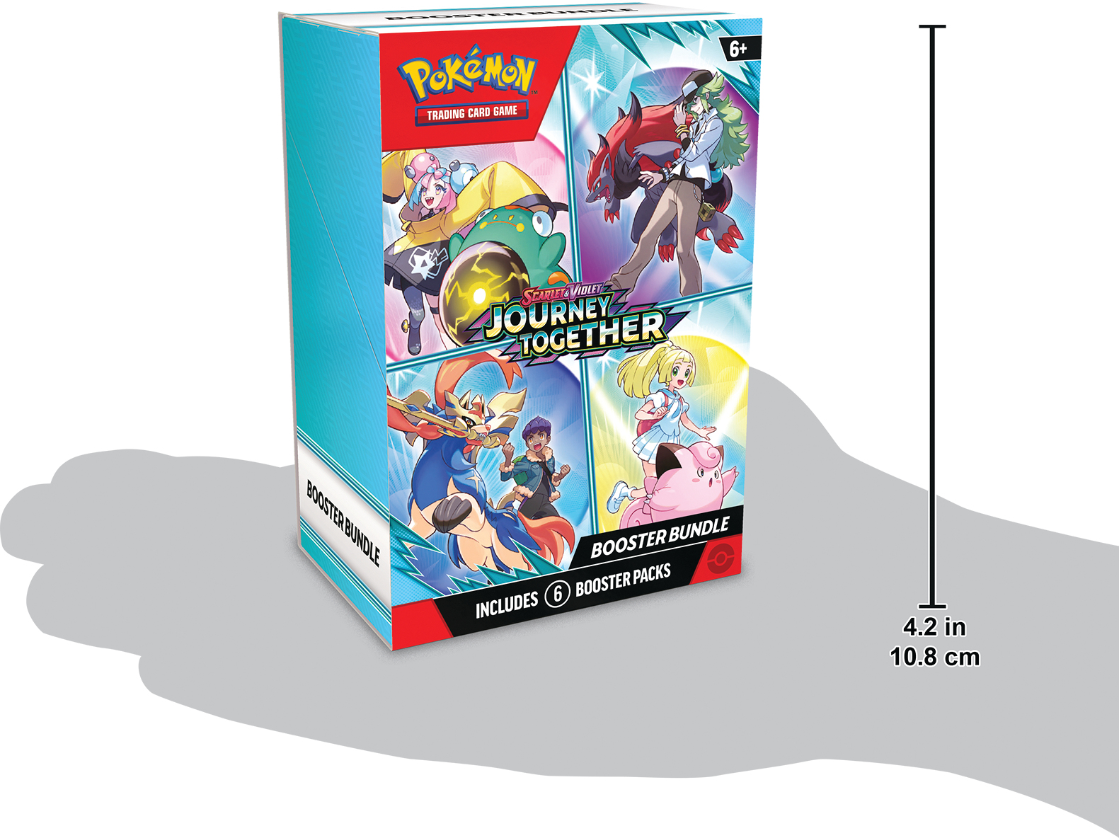 With deep trust and steady guidance, Trainers help bring out the best in their Pokémon. The bond they share empowers them to act as one in battle as they push their strength to the limit, including as Pokémon ex! Team up with N’s Zoroark ex, Iono’s Bellibolt ex, Lillie’s Clefairy ex, Hop’s Zacian ex, and more Trainer's Pokémon, and discover the unstoppable power of friendship in the Pokémon TCG: Scarlet & Violet—Journey Together expansion!
