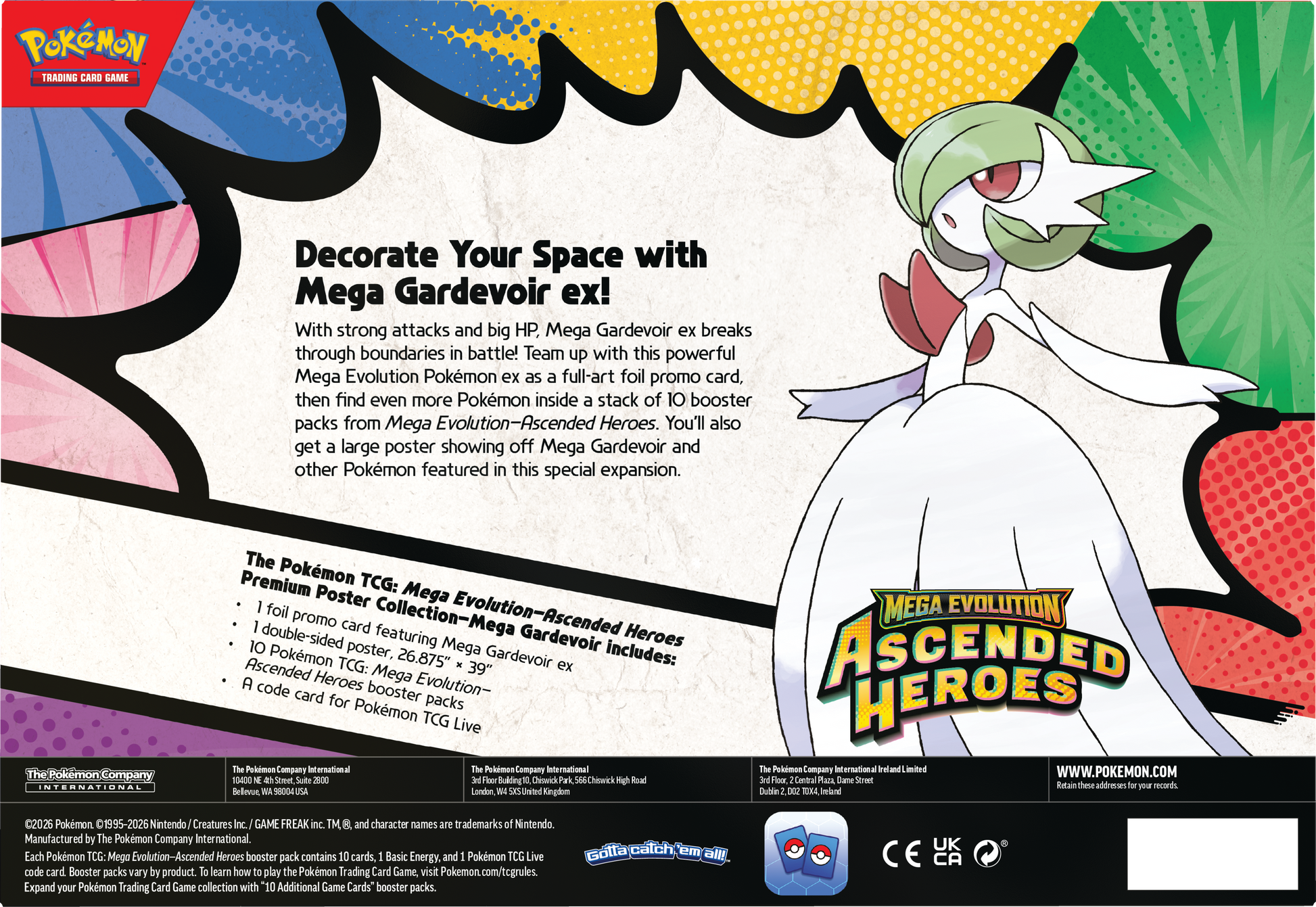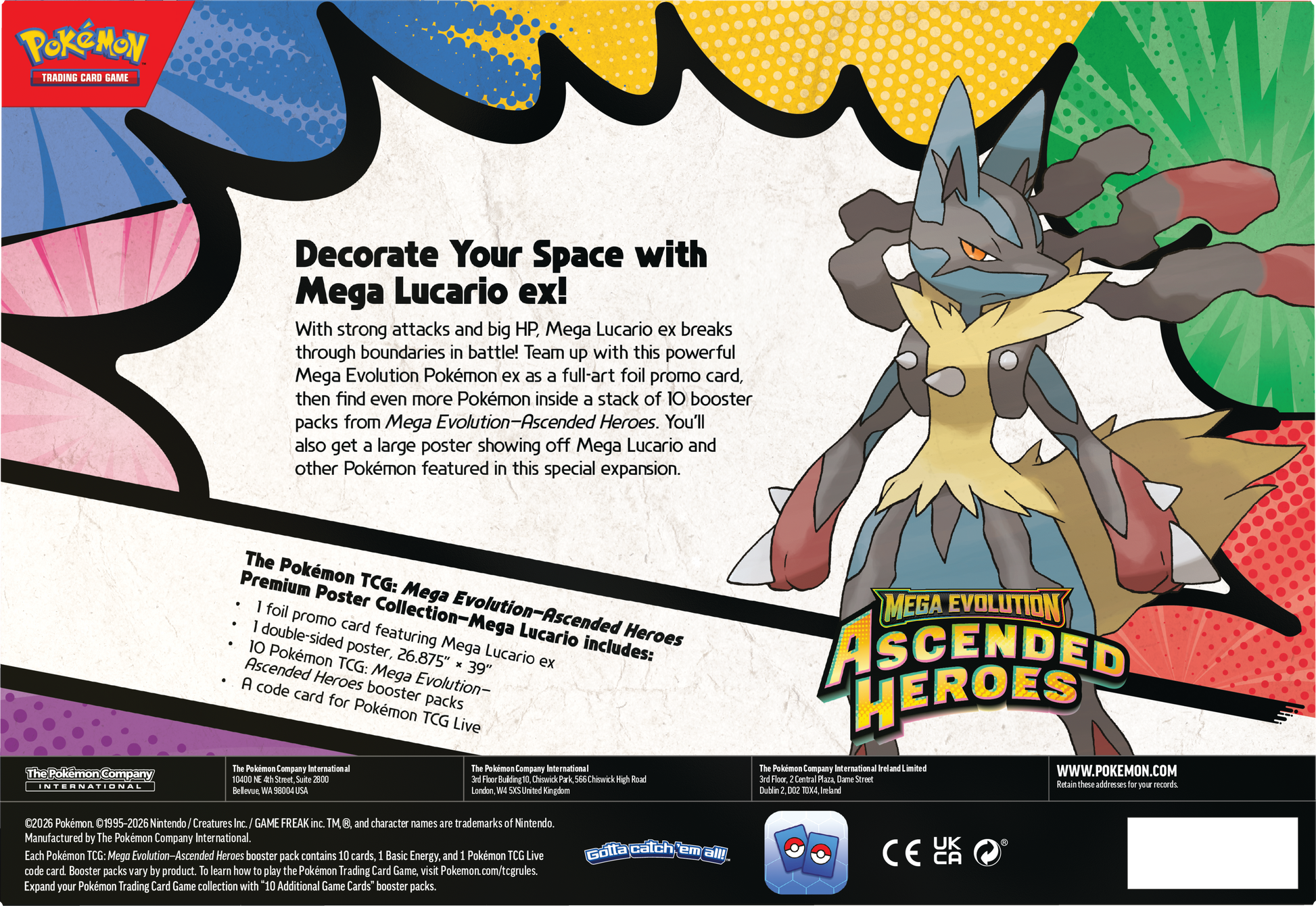 Each Pokémon TCG: Mega Evolution-Ascended Heroes Premium Poster Collection-Mega Lucario or Mega Gardevoir includes: