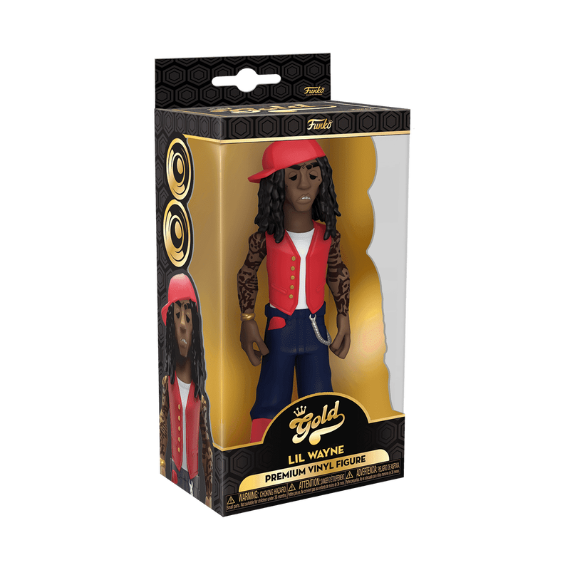 Go for GOLD in your music collection with the new Funko GOLD Lil Wayne premium vinyl figure. Lil Wayne is wearing his classic red vest outfit for this 5-inch tall collectible. GOLD is the perfect way to commemorate some of your favorite, iconic music artists in your collection, and each figure comes in a sleek, display-ready box that is easy to stack with other GOLD collectibles. Vinyl figure is 5-inches tall.