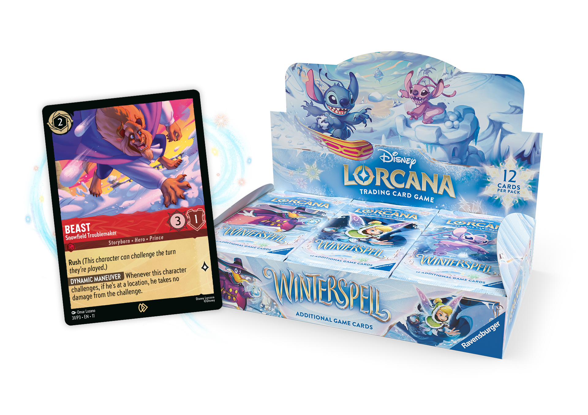 Bask in a snowfall of cards! With a Winterspell booster display box, you get 24 booster packs of 12 cards each. That’s 288 cards in total—enough to make you freeze in your snowshoeing tracks.
