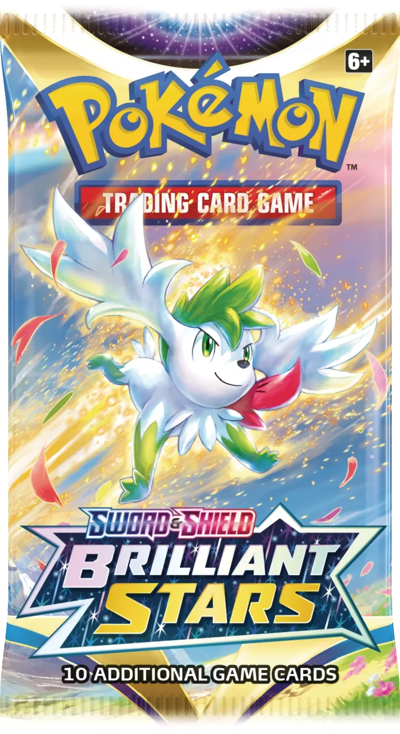 • Each Sword & Shield: Brilliant Stars - Booster Pack contains 10 randomly inserted game cards.