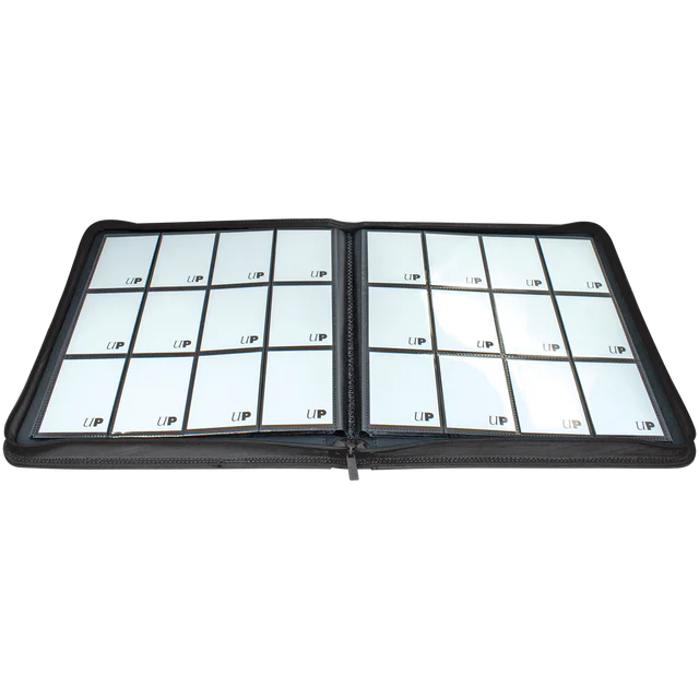 The Vivid 12-Pocket Zippered PRO-Binders are designed for collecting and organizing playsets of your favorite trading cards. Each binder features a padded leatherette cover with a matching zipper closure and pull tab. After unzipping the binder, you'll find twenty 12-pocket pages sized for standard trading cards in side-loading pockets, allowing you to store up to 480 cards in Deck Protector sleeves. Pages feature a low-friction black backing, creating a separation between the front and back pockets as well as providing cards a classic framed look. Every PRO-Binder is made with acid-free, non-PVC materials to ensure your cards are protected and preserved. The 12-Pocket Playset Premium PRO-Binders are available in 8 colors: Blue, Green, Purple, Red, Light Blue, Yellow, Teal, and Black.